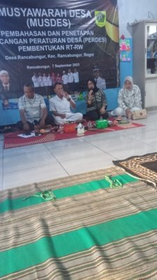 Rancabungur, Jum’at 5 September 2025 – Pemerintah Desa Rancabungur menggelar Musyawarah Desa (Musdes) di Aula Paud Mawar Kp. Rancabungur dengan agenda pembahasan dan penetapan rancangan Peraturan Desa (Perdes) tentang pembentukan Rukun Tetangga (RT) dan Rukun Warga (RW).